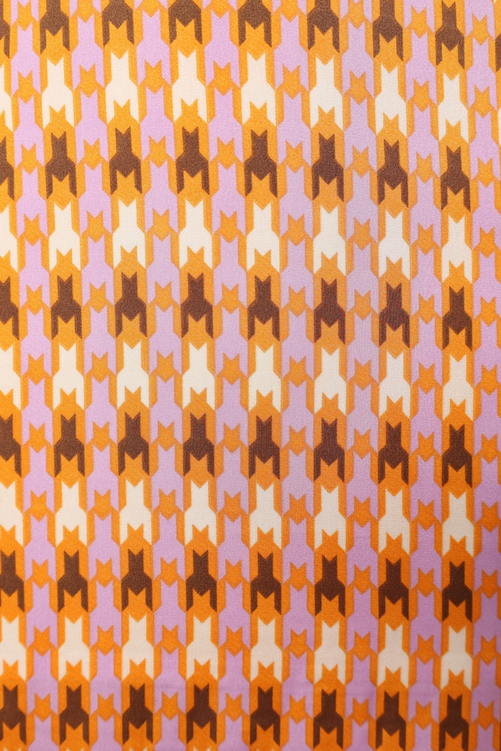 This geometric print design A-line skirt made from a soft satin fabric is truly an eye catcher. It features a midi length, back invisible zip with hook and eye clasp and a statement side split detail for added drama.