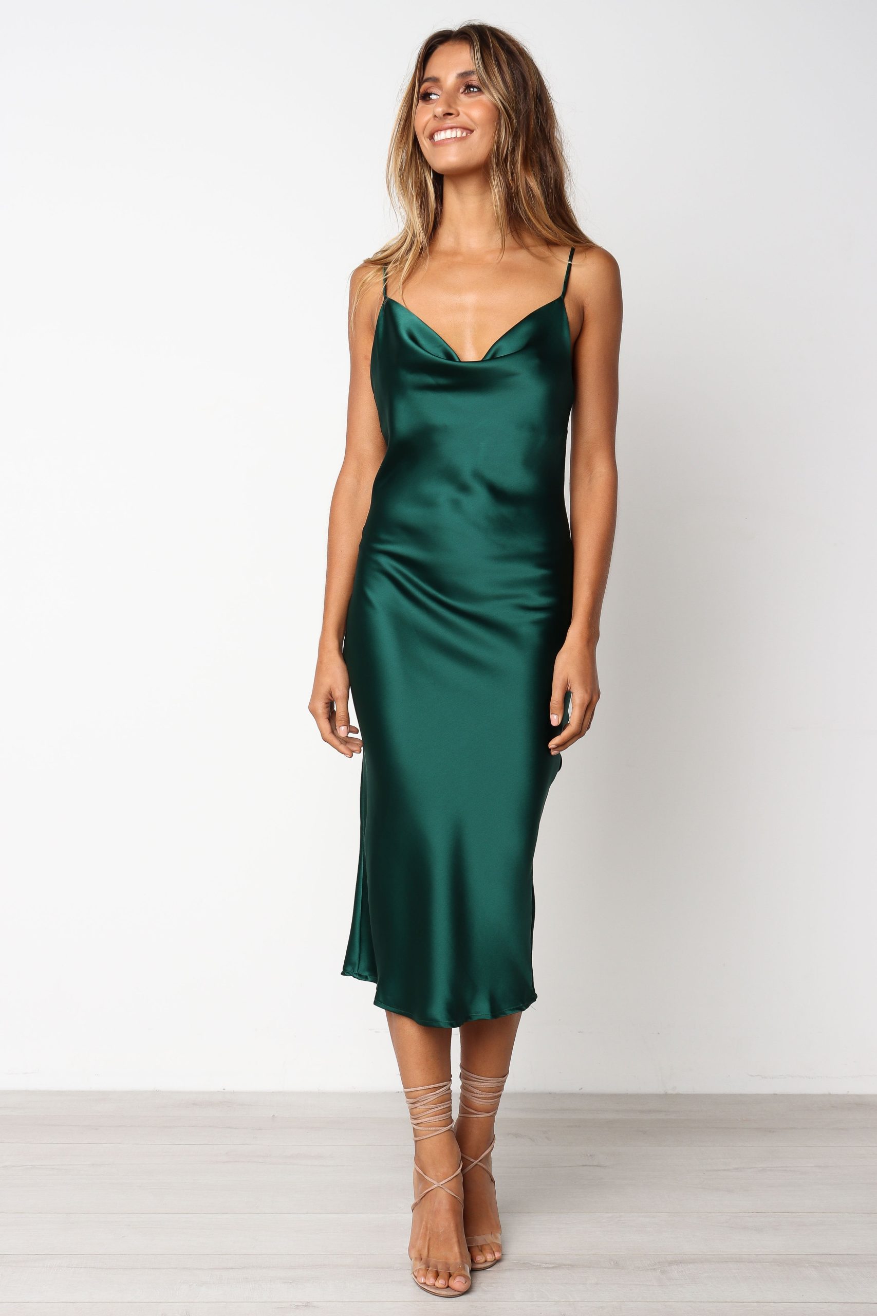 This midi-length cowl neck dress is the perfect blend of style and sophistication. Its thin adjustable shoulder straps give you the perfect fit, while its back split adds a flirty touch to your look. The silky satin finish will ensure that you sparkle all night long!